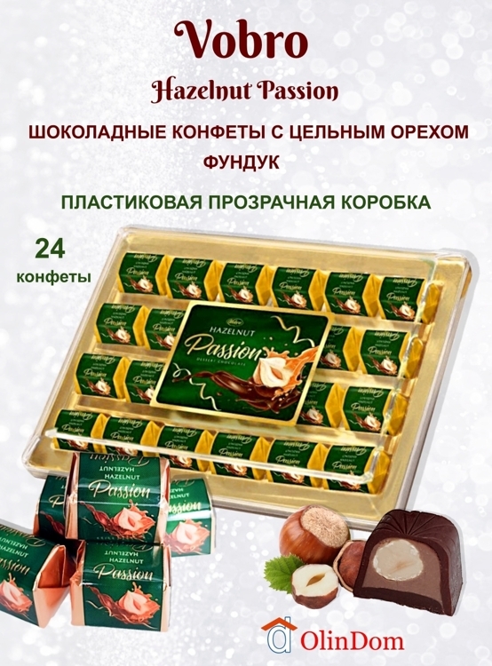 Подарочный набор шоколадных конфет пралине с цельным фундуком Hazelnut Passion, Vobro, Польша, 290 г.