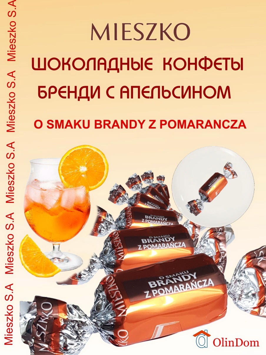 Бренд MIESZKO предлагает вкусные шоколадные конфеты со вкусом бренди с апельсином. Элегантное и насыщенное послевкусие обязательно добавит уникальности любому особенному моменту!